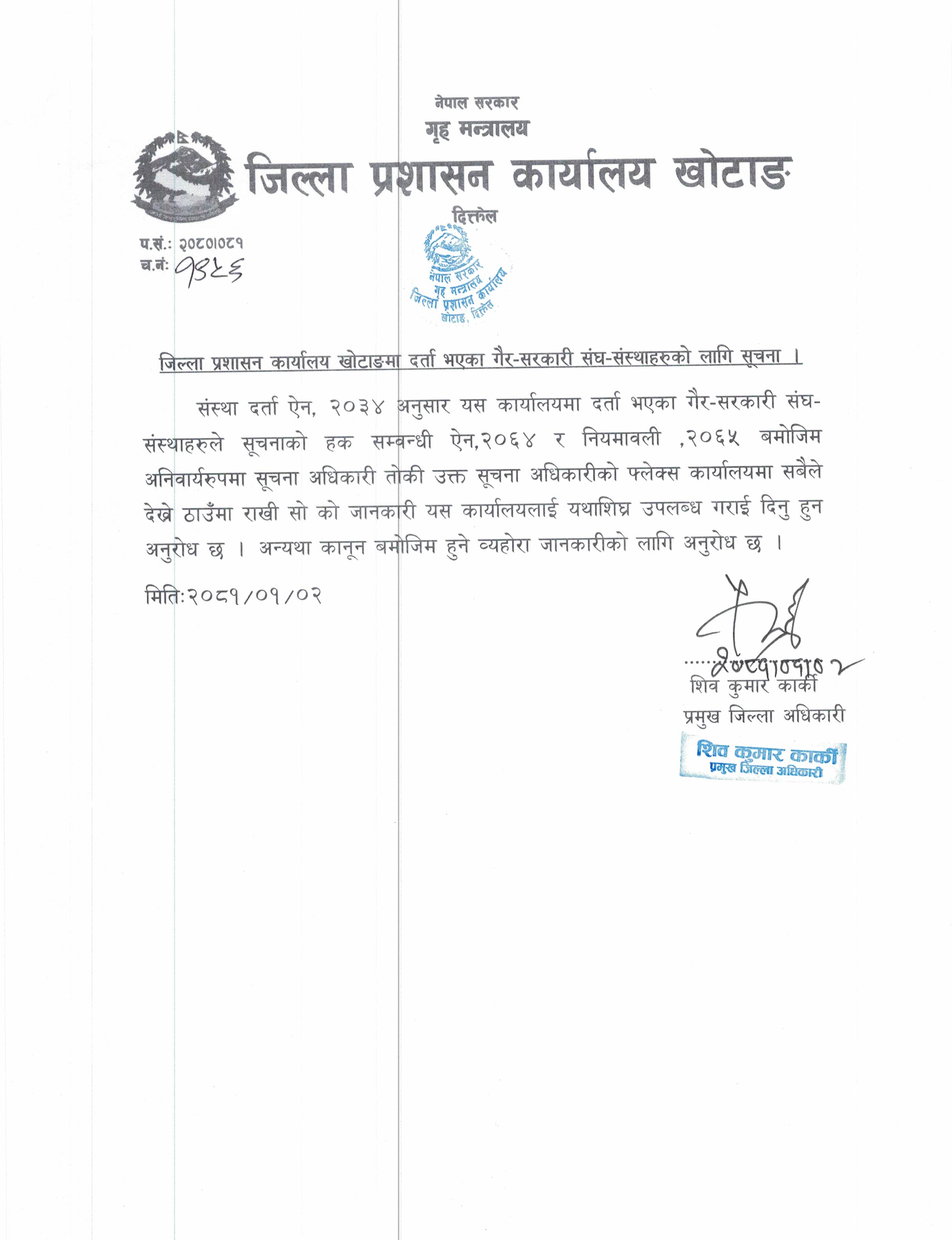 जिल्ला प्रशासन कार्यालय, खोटाङ्ग