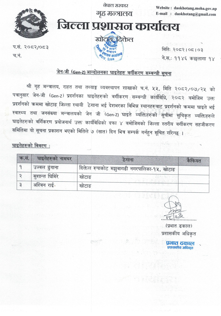 जेन-जी (Gen-Z) आन्दोलनका घाइतेहरु वर्गीकरण सम्वन्धी सूचना....